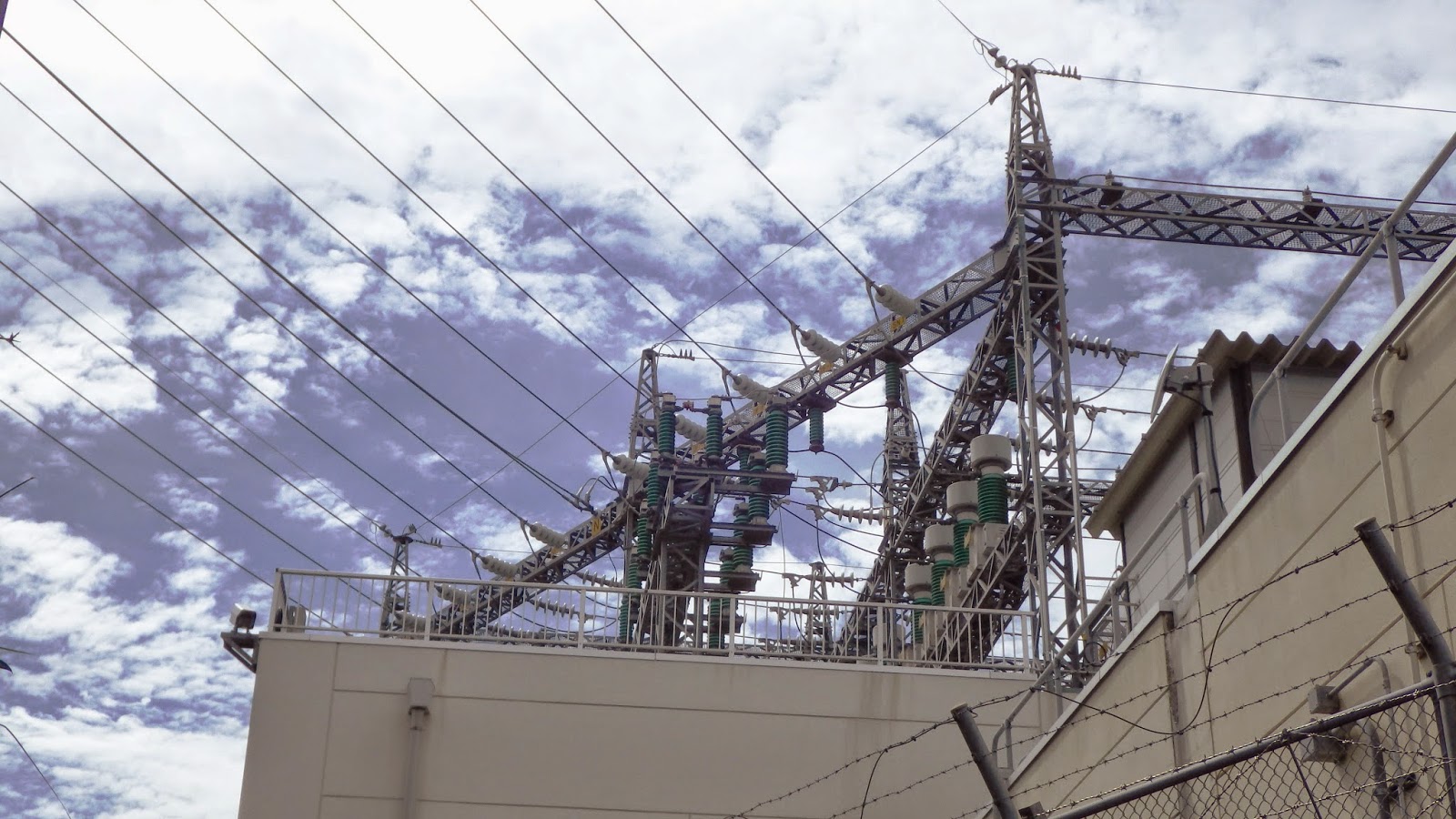 建屋屋上のき電設備 左 大正方形はSN接続CR装置