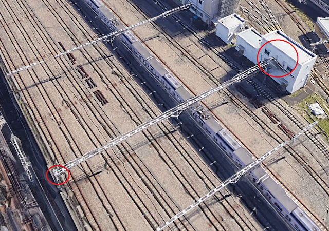 東京地下鉄基地内で車両電力を消費するはずであるが分岐点には電力量計が無い。基地内に開閉所的な施設があるかは不明なのでGoogle Street ViewとGoogle Earthを駆使して調査。